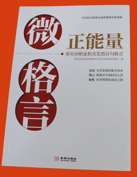 德陽市千山街三段87號(hào)近日,由中華職業(yè)教育社黃炎培職業(yè)教育思想百句格言評(píng)選活動(dòng)主委會(huì)編寫的《微格言 · 正能量》一書出版發(fā)行。全國(guó)政協(xié)副主席、中華職業(yè)教育社理事長(zhǎng)張榕明,民建中央常委、中華職業(yè)教育社理事、中華同心溫暖工程基金會(huì)副理事長(zhǎng)蘇華,中國(guó)國(guó)土資源作家協(xié)會(huì)副主席、中國(guó)土地學(xué)會(huì)文化分會(huì)副主任周偉分別為該書作序。
