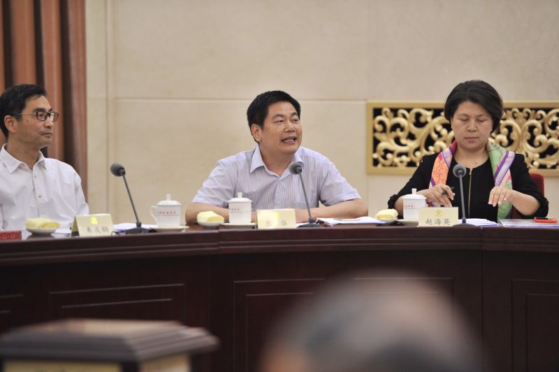 蘇華(全國(guó)政協(xié)委員、民建中央常委、中華職業(yè)教育社副理事長(zhǎng)、四川現(xiàn)代教育集團(tuán)理事長(zhǎng))、尚福林(中國(guó)銀行業(yè)監(jiān)督管理委員會(huì)原主席)、宋蘭(國(guó)稅總局原副局長(zhǎng))、楊凱生(中國(guó)銀監(jiān)會(huì)特邀顧問、中國(guó)工商銀行原行長(zhǎng))、曹德旺(福耀集團(tuán)董事長(zhǎng))、傅成玉(中石化集團(tuán)原董事長(zhǎng))等以及專家學(xué)者許善達(dá)、張和平、劉桓在座談會(huì)上發(fā)言。全國(guó)政協(xié)副主席陳元在會(huì)上講了意見。財(cái)政部副部長(zhǎng)史耀斌介紹了有關(guān)情況。國(guó)家稅務(wù)總局局長(zhǎng)王軍、國(guó)家發(fā)展和改革委員會(huì)副主任連維良等與委員互動(dòng)交流。