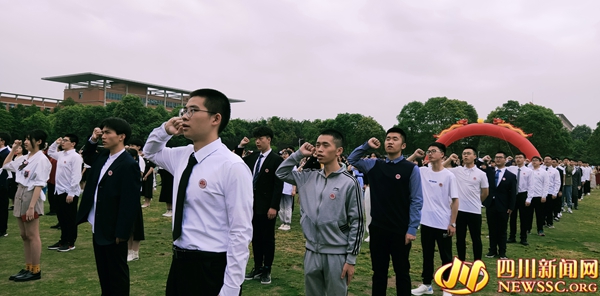 四川新聞網(wǎng)消息(陳斯 柯厚權(quán) 圖/文)志得意滿,志在清云,5月4日,德陽外國語學(xué)校舉行2021年高三學(xué)生成人儀式。